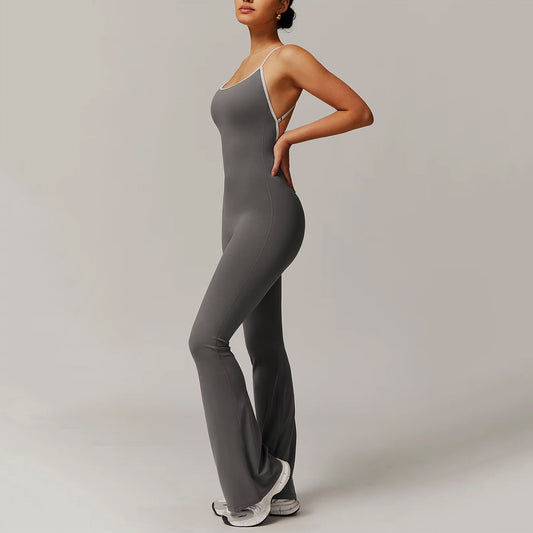 Çizgi Detaylı Sırt Dekolteli Büzgü Tulum