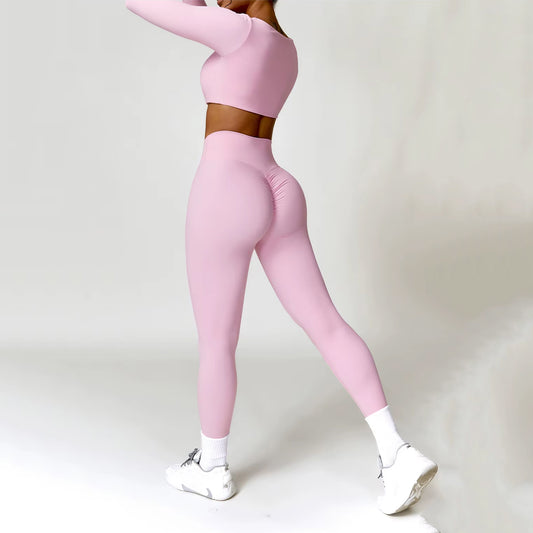 İndirimUzun Kollu Crop Büzgü Tayt Takım